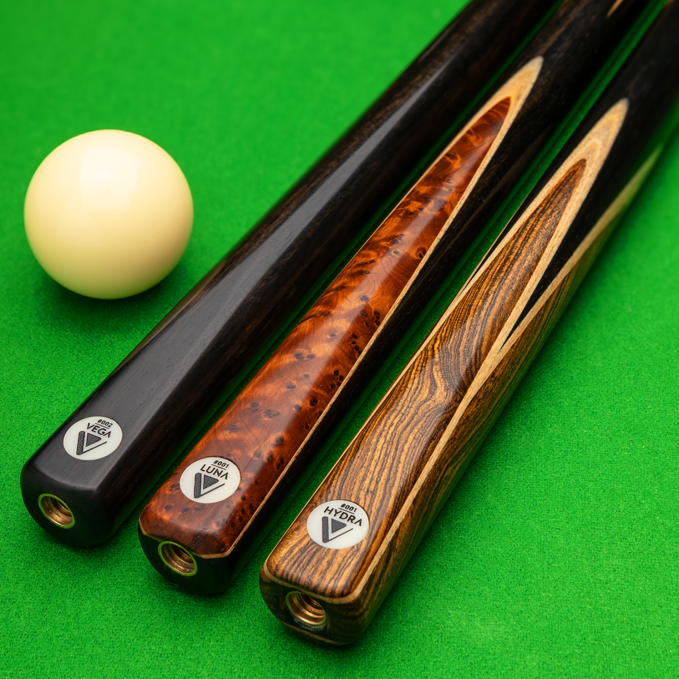 The base construction for all our cues, the Vega is constructed from North American ash with a hand spliced African ebony butt, all to your specifications.